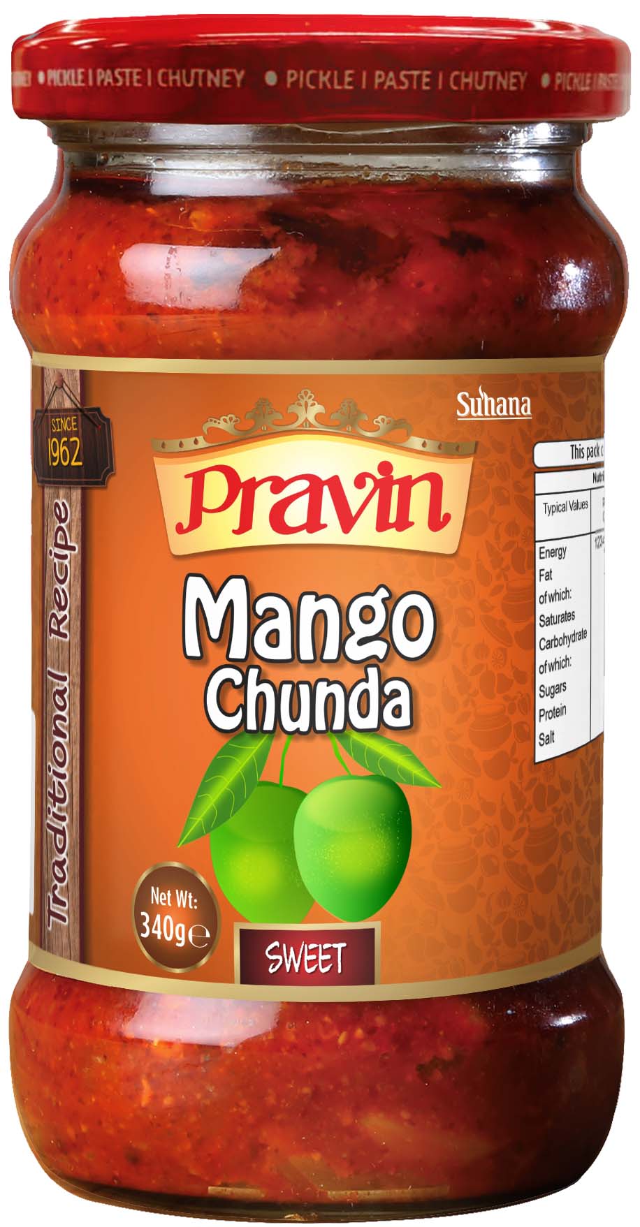 Mango chunda is a spicy, sour and sweet mango preserve made with raw unripe mangoes and spices. Traditionally chunda is made by keeping the mango-sugar mixture in a glass jar in sunlight.